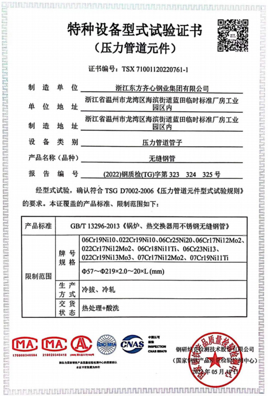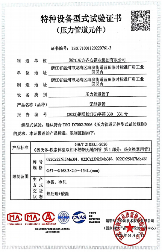 浙江東方齊心以不銹鋼系列產(chǎn)品為主導(dǎo),品種有不銹鋼管、奧氏體不銹鋼管、高溫合金鋼管、雙相不銹鋼管、鎳基合金管、冷凝器用管、U形管、核電管、不銹鋼管件、法蘭、閥門(mén)等。規(guī)格有6-2020x0.8-60mm,Ф16-25長(zhǎng)度可達(dá)33m。公司擁有精密制造鋼管的各類機(jī)械設(shè)備25臺(tái)(套),其中各類冷軋管機(jī)15臺(tái), 冷拔機(jī)10臺(tái),天然氣熱處理爐2套。 |